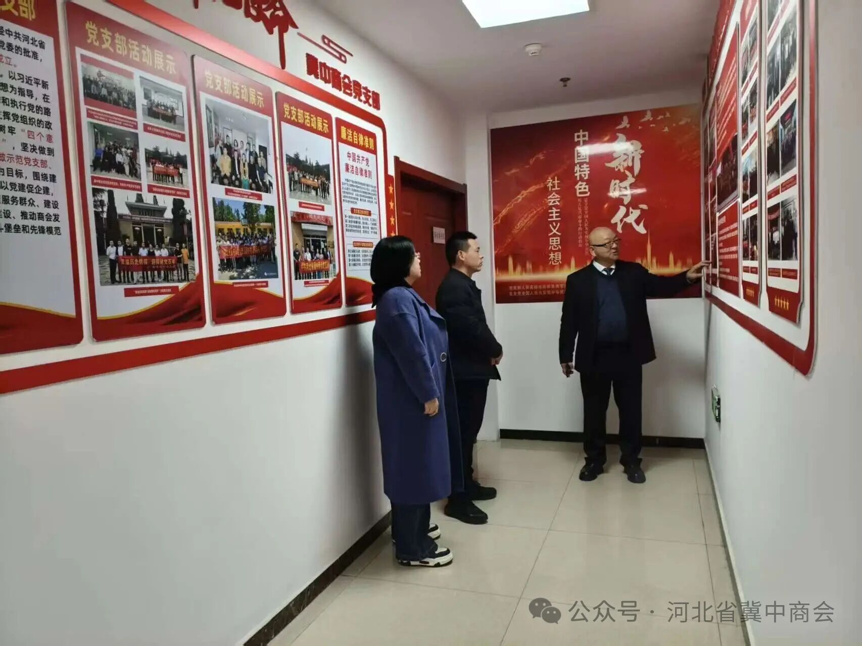 在会长高艳虎的带领下,王梓森一行实地参观了商会阵地建设,党建文化墙、商会荣誉墙及办公环境等,详细了解商会的组织架构、运作模式以及近年来的发展历程和取得的成绩。
